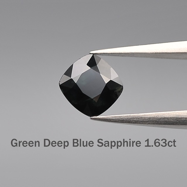 グリーン・ディープブルーサファイア 1.63ct(加熱) オーストラリア産|クッションカット/ジェムデータラベル付き