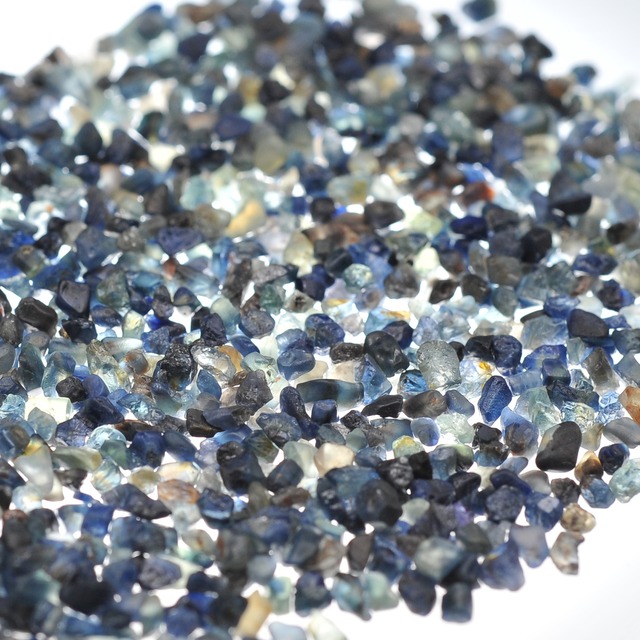 ータンザニア産 非加熱サファイア原石ー ブルーからグリーンまでの色合いが美しく混ざり合う、天然そのままのサファイア原石ロットです。 重量:100.92ct ピース数:約935石 サイズ:1.7 × 1.5mm ~ 5.7 × 3.2mm 産地:タンザニア(アフリカ) 処理:非加熱(Unheated) 硬度:モース硬度 9(宝石の中でも最高レベルの硬さ) 透明度:半透明 ~ 不透明 用途 ・コレクションストーン ・ワイヤーアクセサリーやレジン封入などクラフト素材 ・ルースの練習研磨用 ・スピリチュアル/お守りストーン サファイアは「誠実・真理・知恵」を象徴する石とされ、古来より王族や聖職者に愛されてきました。 青と緑のグラデーションが、まるで地球の海と森を閉じ込めたような神秘的な輝きを放ちます。 天然石のため、サイズ・形・色合い・内包物には個体差があります。写真をご確認のうえ、ご購入ください。 【発送について】 クリックポストまたは宅急便コンパクトにて発送いたします。 ご希望に合わせてお選びください。 高額商品につきましては、対面受け取り・補償付きの宅急便コンパクトをおすすめいたします。