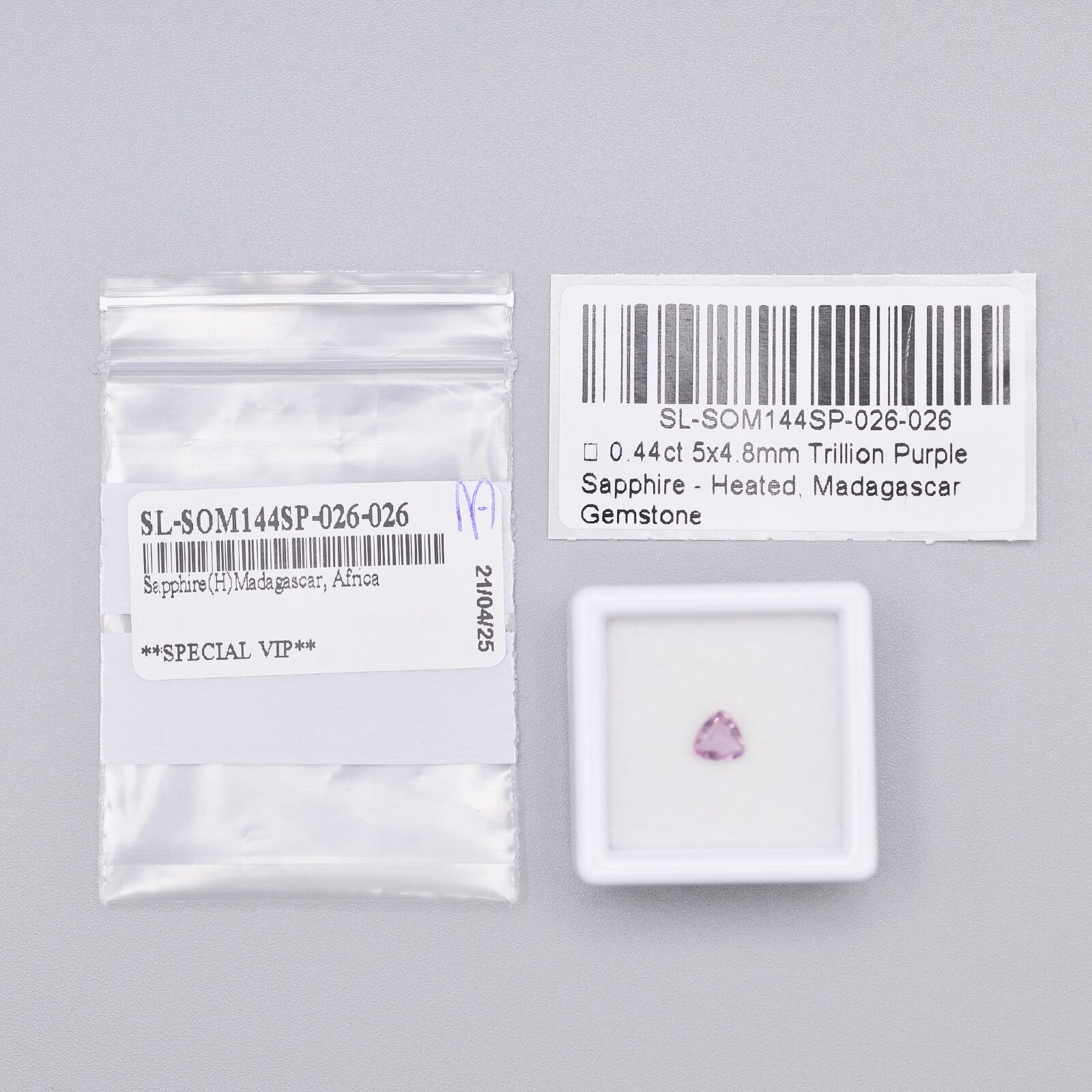 優美なライラックパープルが魅力のトリリアントカットサファイア。