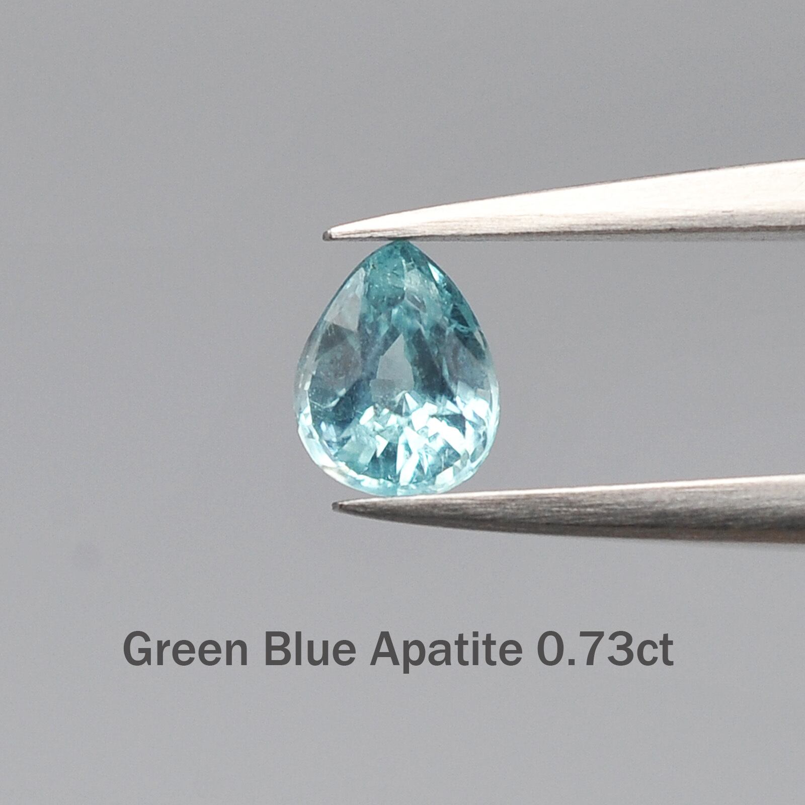 こちらはアフリカ産の非加熱アパタイト、0.73ctのペアシェイプカットです。