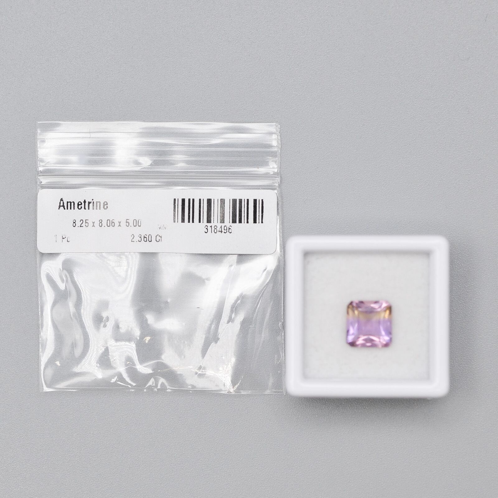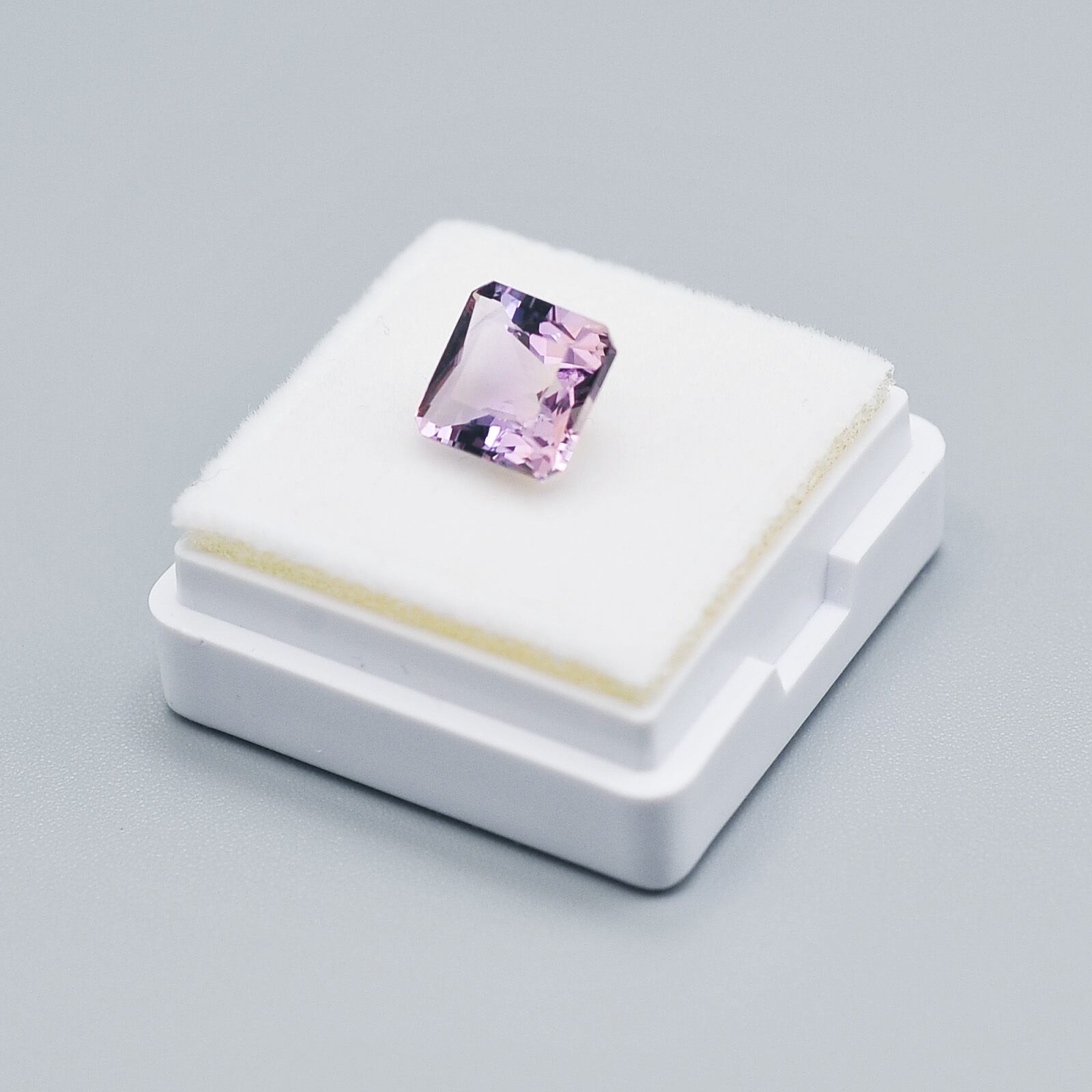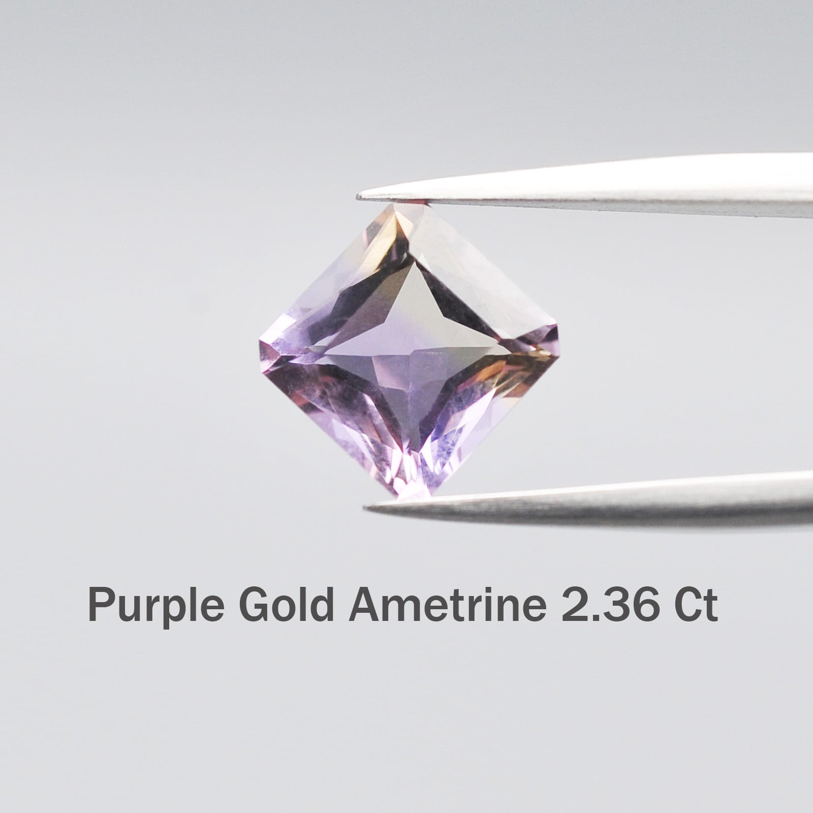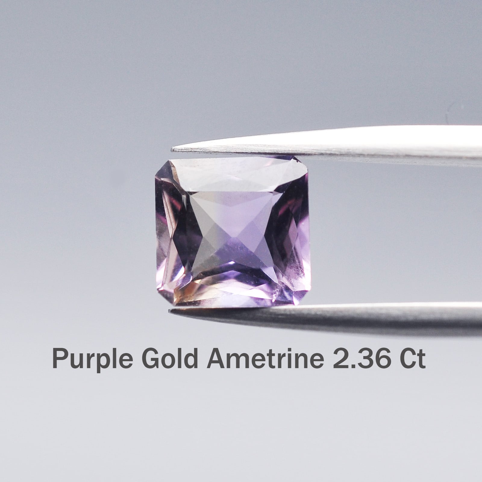 オクタゴンカットが石の輝きを最大限に引き出し、光の角度によって紫とゴールドが美しく交差します。