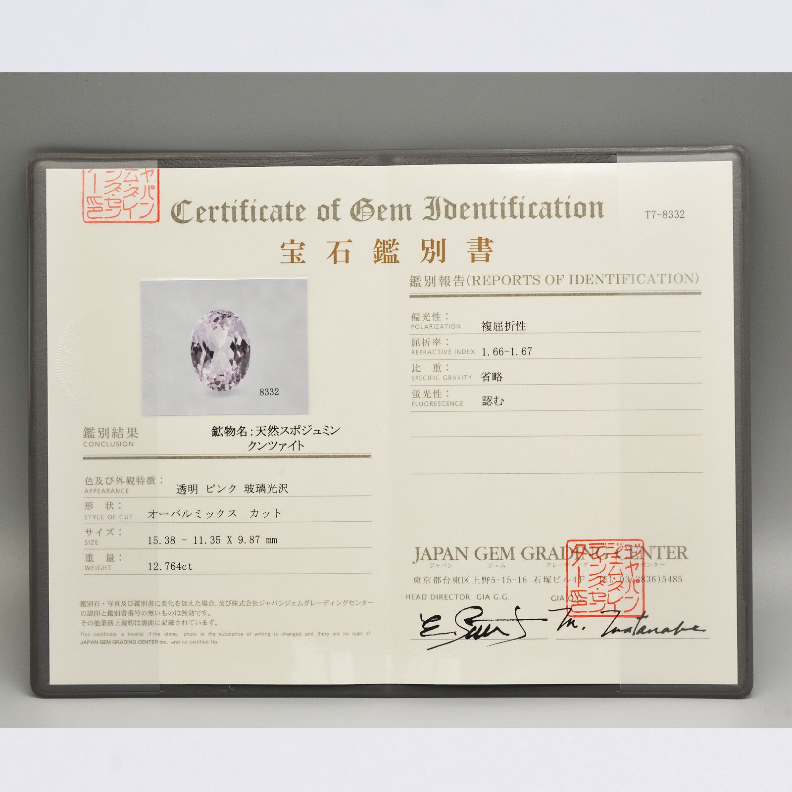 【鑑別付】 アフガニスタン産 クンツァイト 12.764ct 大粒12.764ct 非加熱・未処理(15.3×11.3mm) ルース