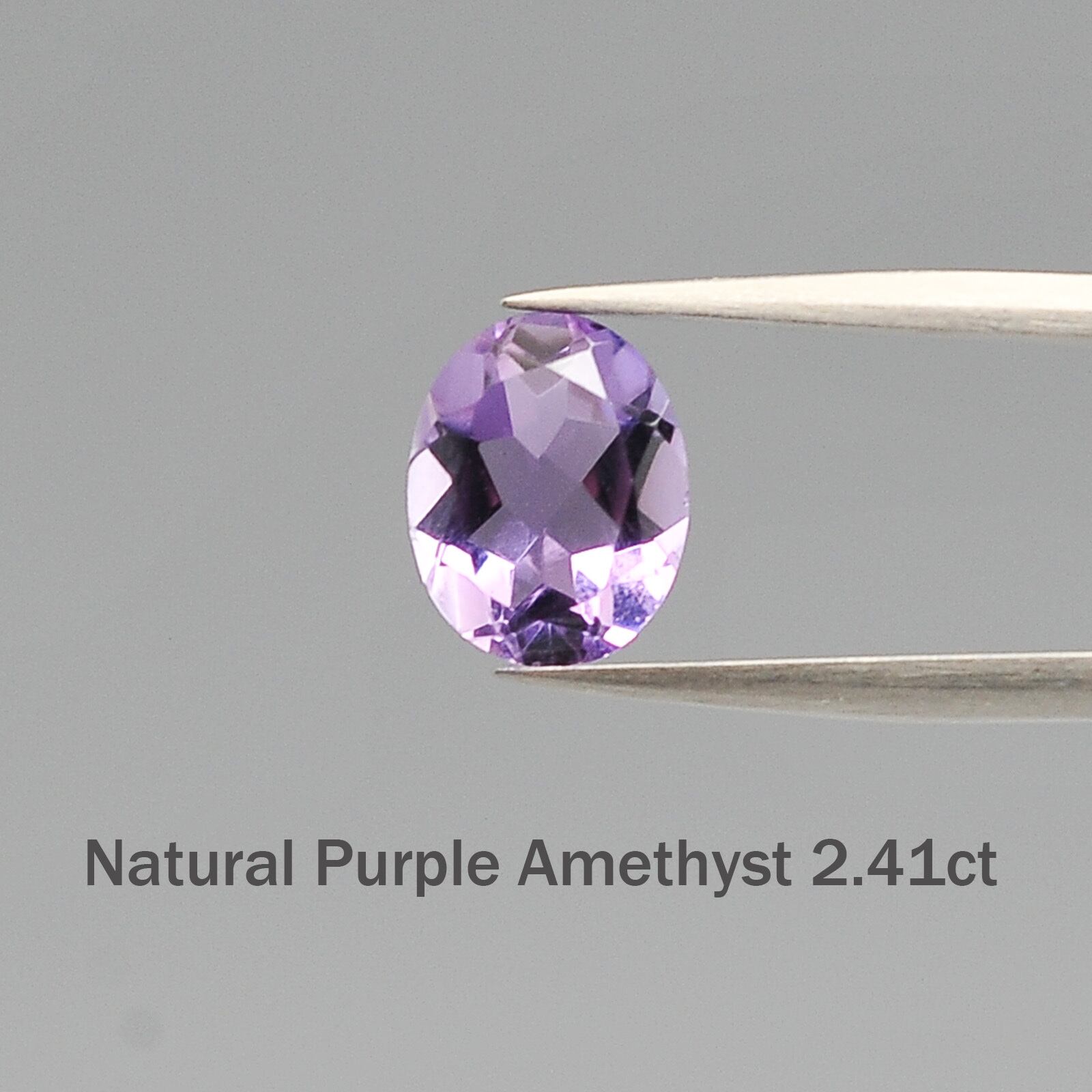 光を受けると、やわらかな紫がふわっと立ち上がるオーバルのアメジストです。
