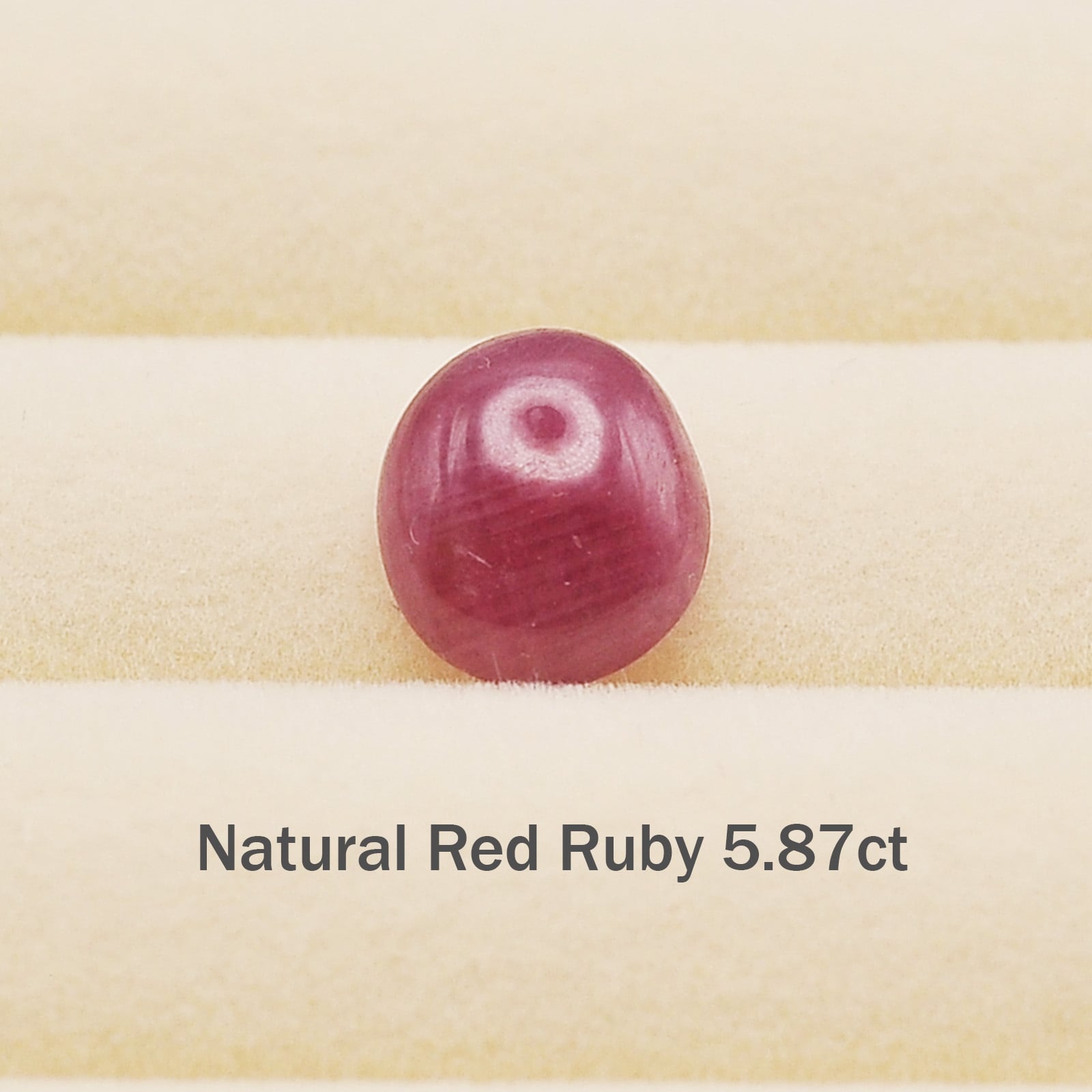 ふっくらとした厚みと艶が可愛い、ルビーのオーバルカボションです。