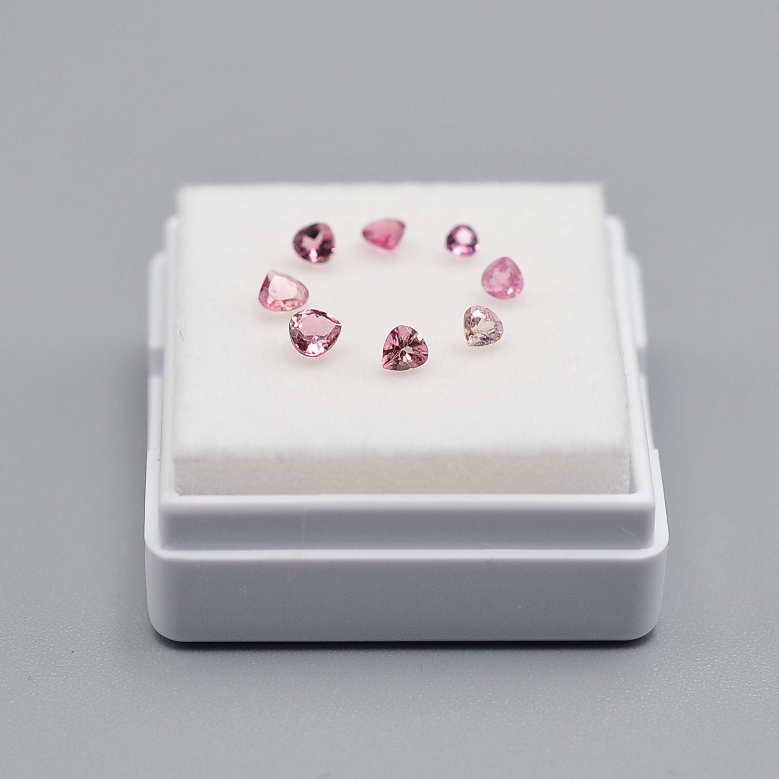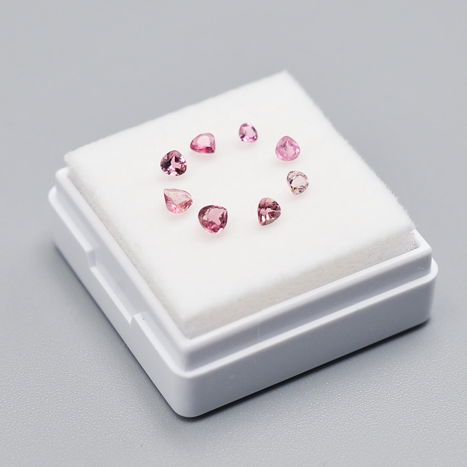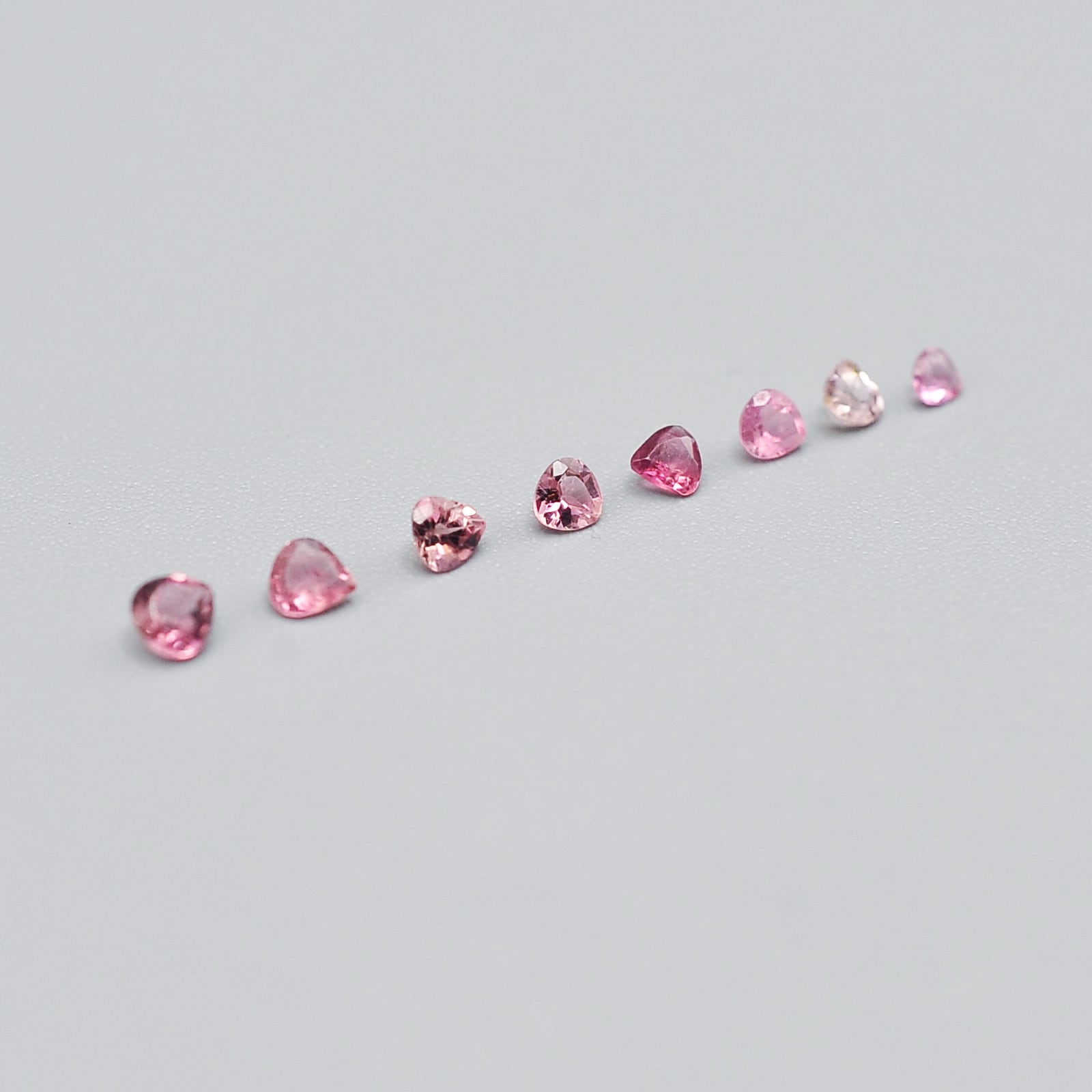 色味や雰囲気のバランスを見ながら組み合わせたルースセットです。( 約3〜2mm前後のわずかにサイズの異なるピンクトルマリンを組み合わせています。)