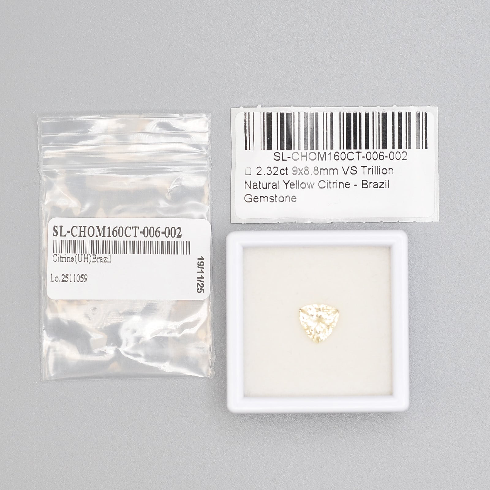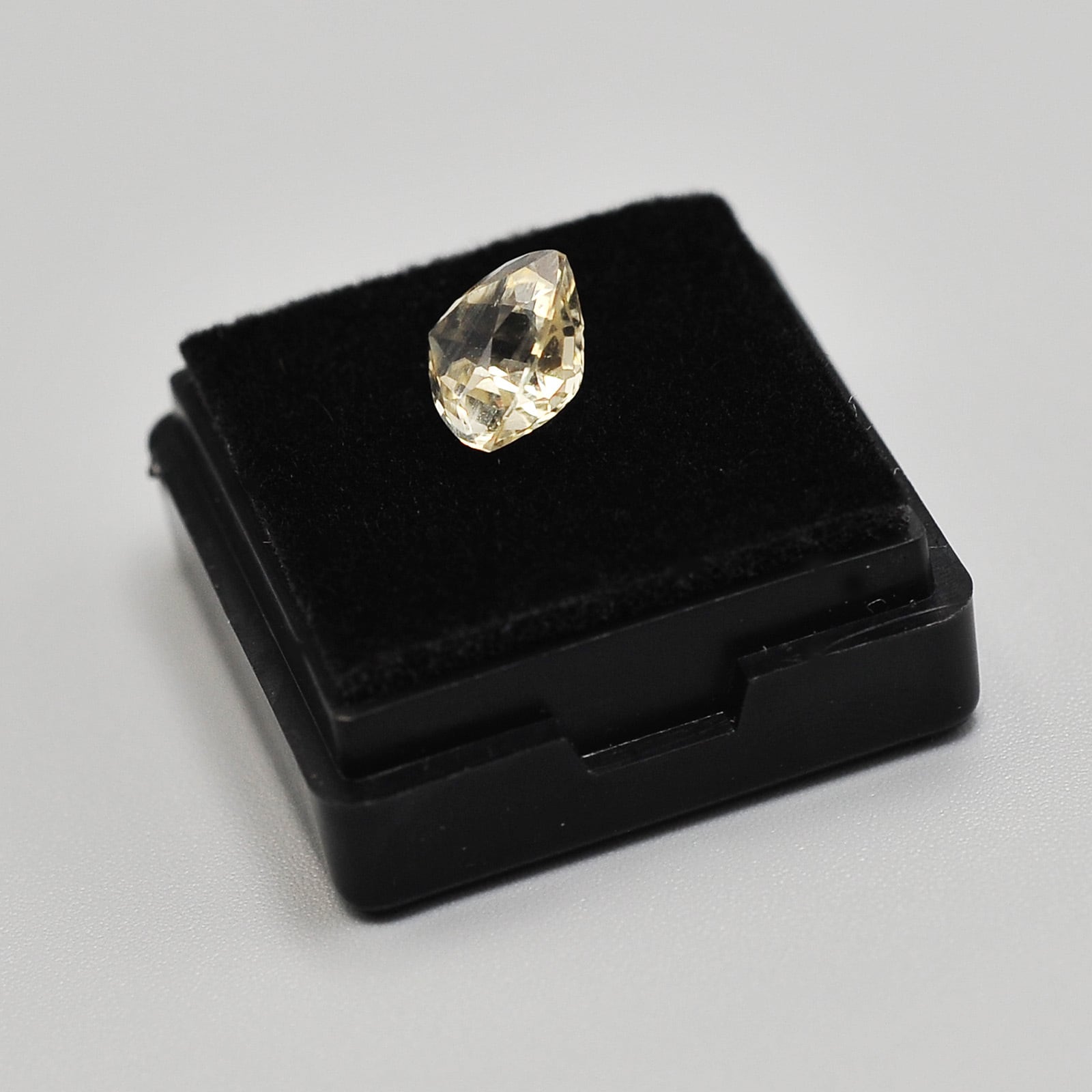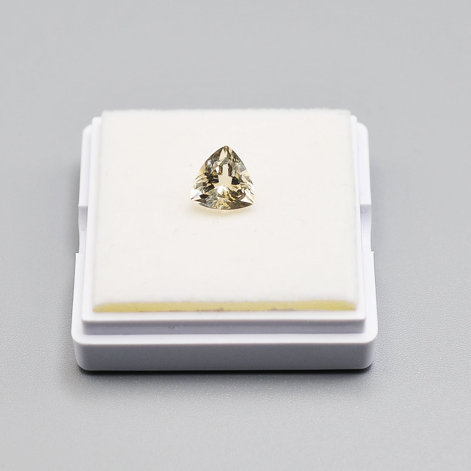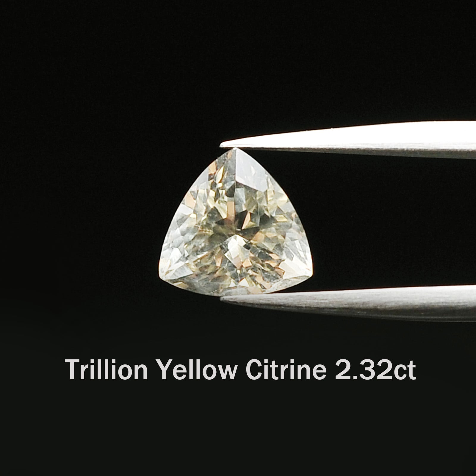 シャープな三角形が美しいトリリアンカットで、光が入るたびに細かな反射がキラッと立ち上がります。