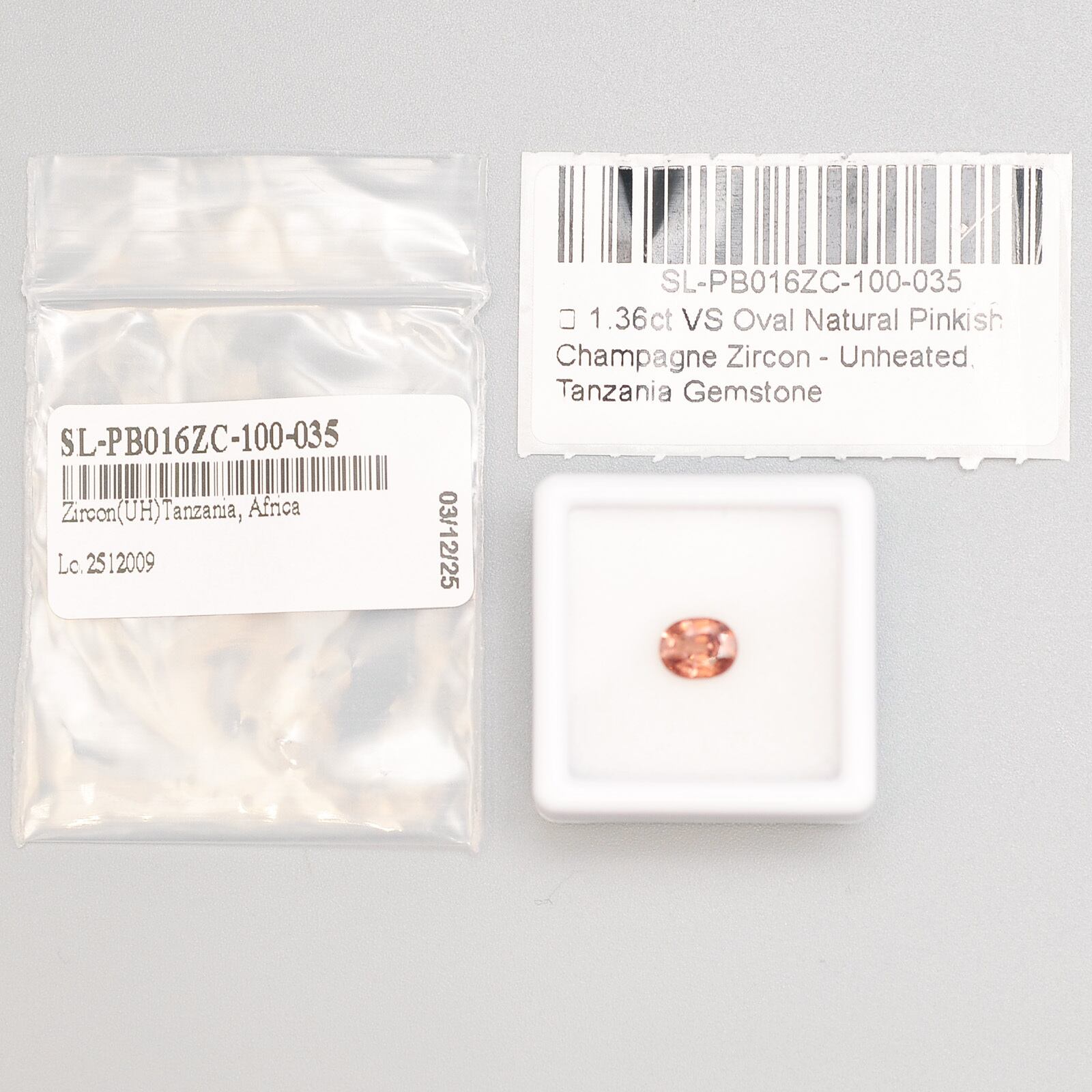 非加熱 シャンパンジルコン 1.36ct タンザニア産 オーバルルース ロゼカラー