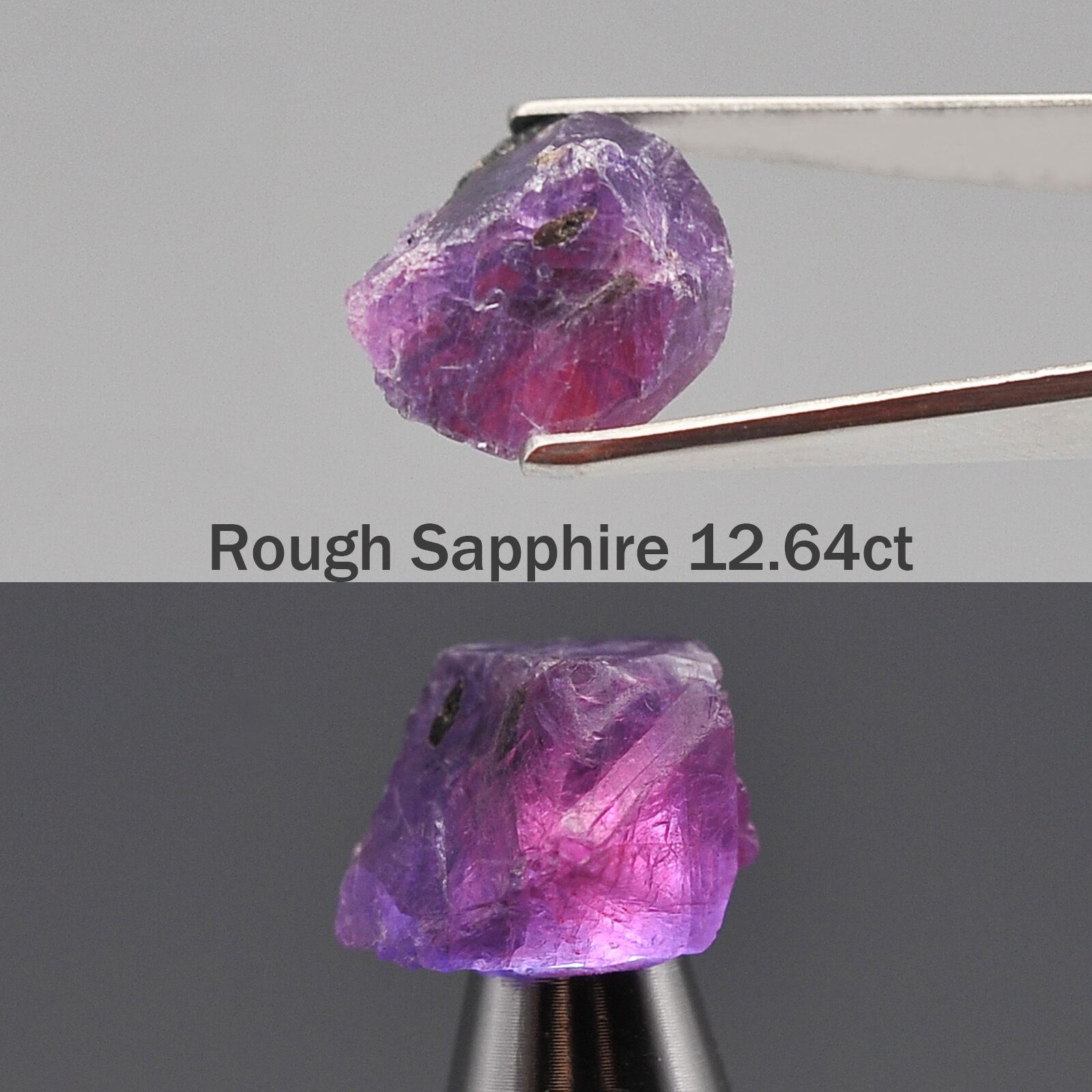 【非加熱】12.64ct マダガスカル産 ピンクパープルサファイア 原石 ナチュラル バイカラー