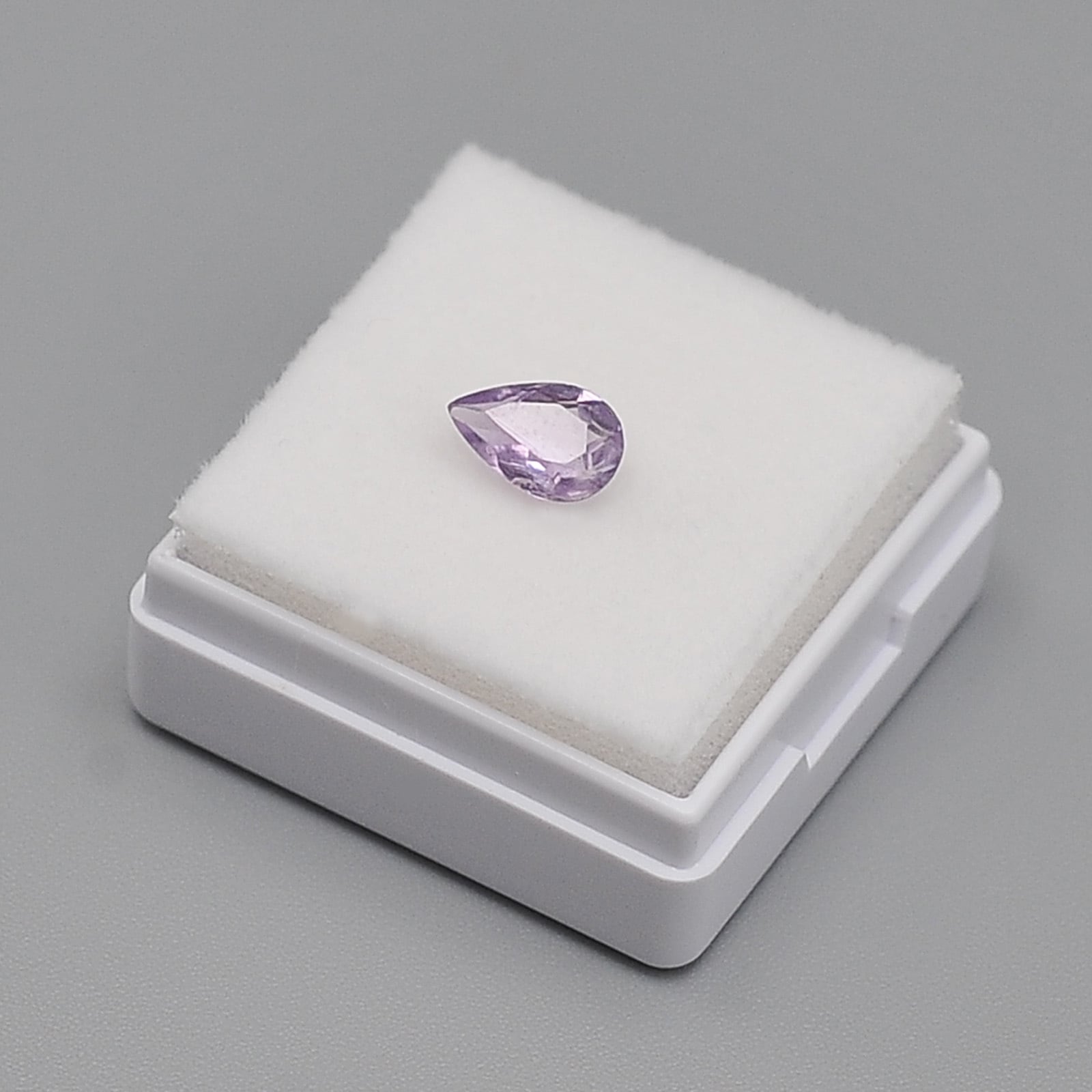 淡く澄んだ発色で、すっきりとしたペアシェイプにカットされた一石。